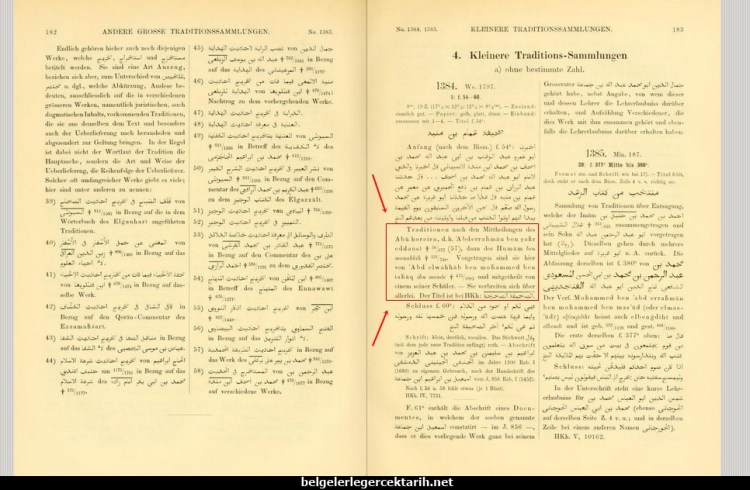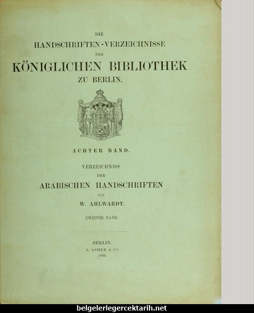 [6] Die Handschriften-Verzeichnisse Der Königlichen Bibliothek Zu Berlin, 8. cild, Verzeichniss Der Arabischen Handschriften Von W. Ahlwardt, 2. cild, A. Asher & Co., Berlin 1889, sayfa 183, numara “1384 We 1797”. (Berlin Kraliyet Kütüphanesi Yazmalar Kataloğu-Arapça El Yazmaları Kataloğu).
