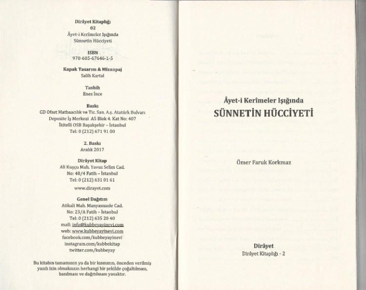 Ömer Faruk Korkmaz, Ayet-i Kerimeler Işığında Sünnetin Hücciyeti, Dirayet Kitaplığı, 2. Baskı, Istanbul 2017, sayfa 88-95.